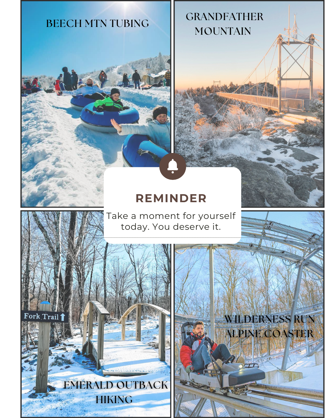 *We encourage you to explore our stunning Beech Mountain & we’re happy to offer you our tips. Breathe in the mountain air, go on an adventure, and relish your time away from work!