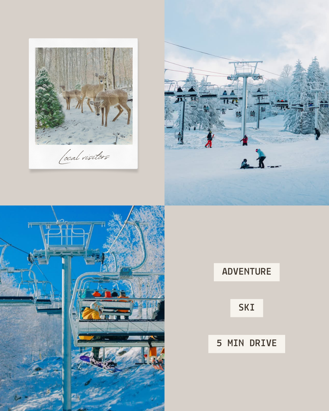*Getting There: The road is paved all the way. The resort has some slightly steep roads as you navigate to the lodge. The town of Beech Mountain does an excellent job keeping the roads salted and plowed in the winter months. However, four wheel drive or chains may be required during heavy snow events.