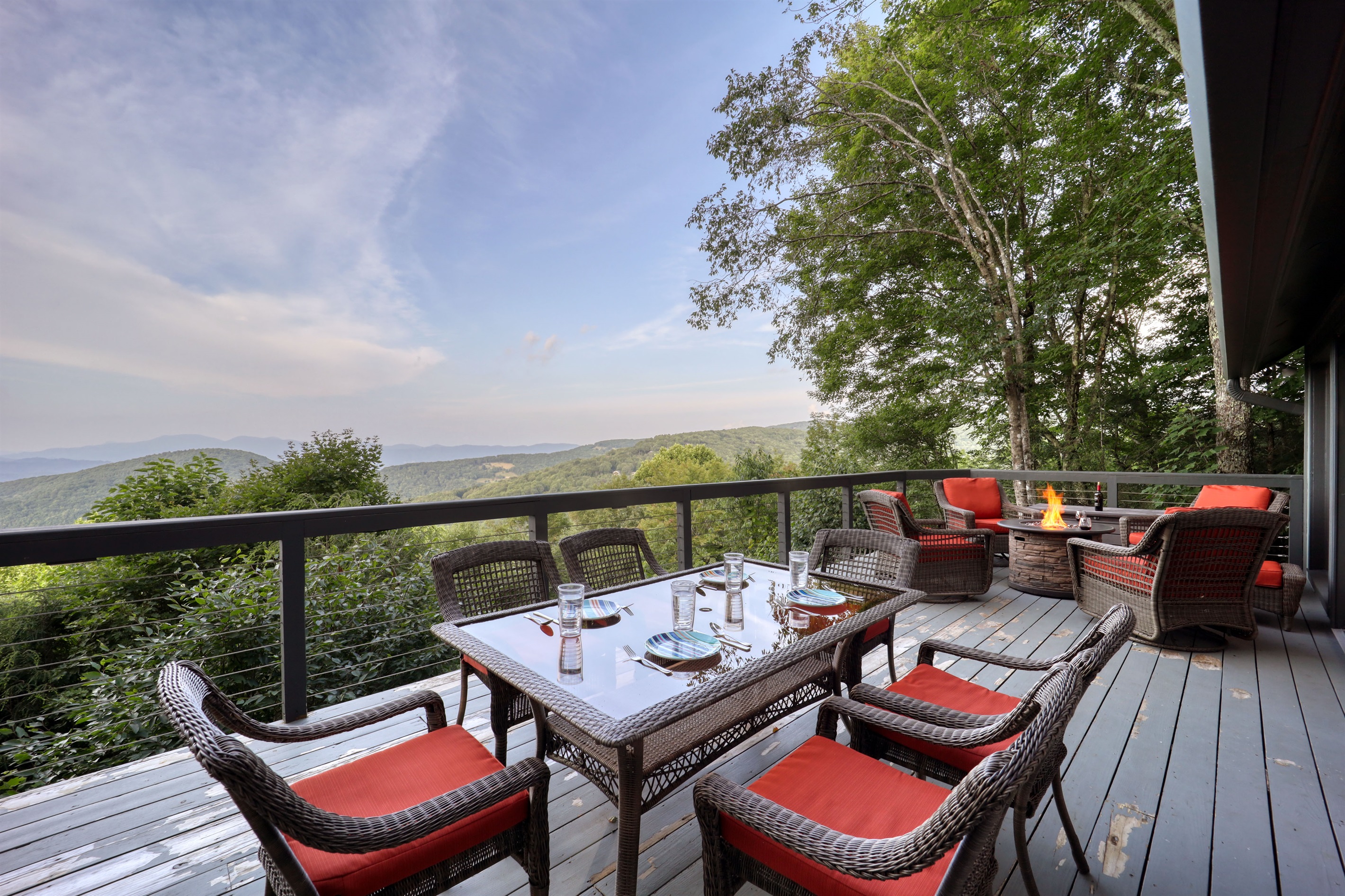 Outdoor Relaxation: Soak up the mountain air in the brand-new hot tub while watching the numerous white tail deer that call our mountain home, or gather around the fire pit on the deck with stunning mountain views.